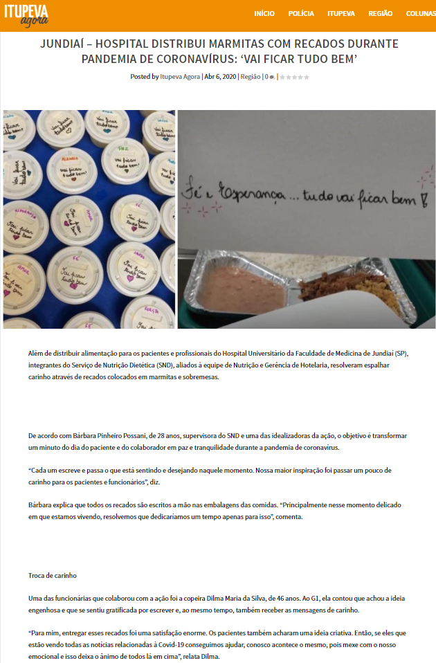 Itupeva Agora – Hospital Universitário distribui marmitas com recados durante pandemia de coronavírus: ‘Vai ficar tudo bem’