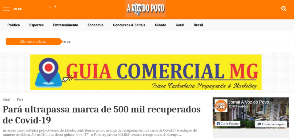 Jornal A Voz do Povo – Pará ultrapassa marca de 500 mil recuperados da Covid-19