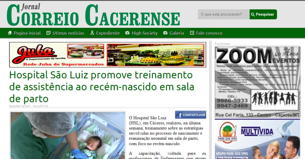 Jornal Correio Cacerense – Hospital São Luiz promove treinamento de assistência ao recém-nascido em sala de parto