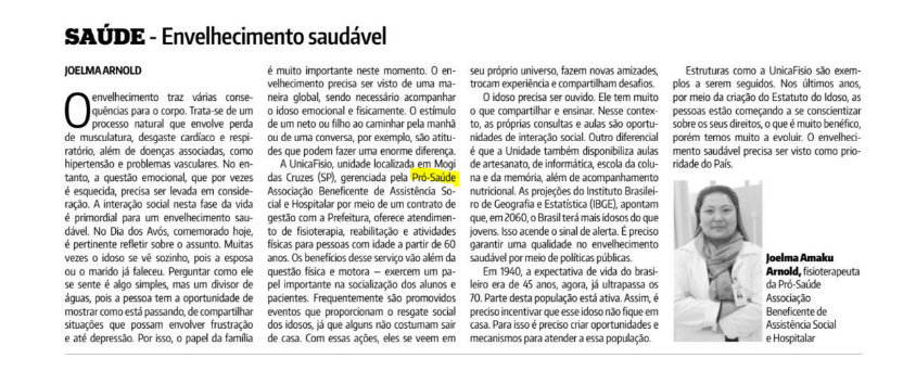 Jornal Correio do Povo – Profissional da UnicaFisio discute sobre envelhecimento saudável no Dia dos Avós