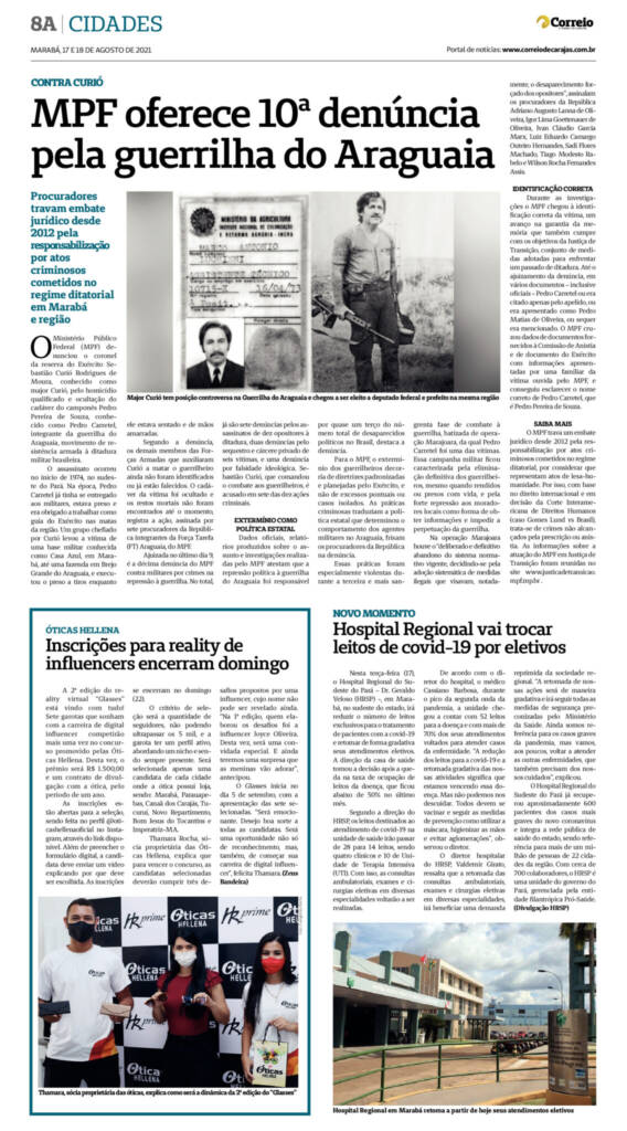 Jornal Correio dos Carajás – Hospital Regional vai trocar leitos de Covid-19 por eletivos