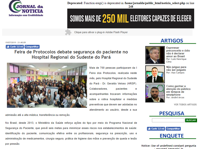Jornal da Notícia – Feira de Protocolos debate segurança do paciente no Hospital Regional do Sudeste do Pará