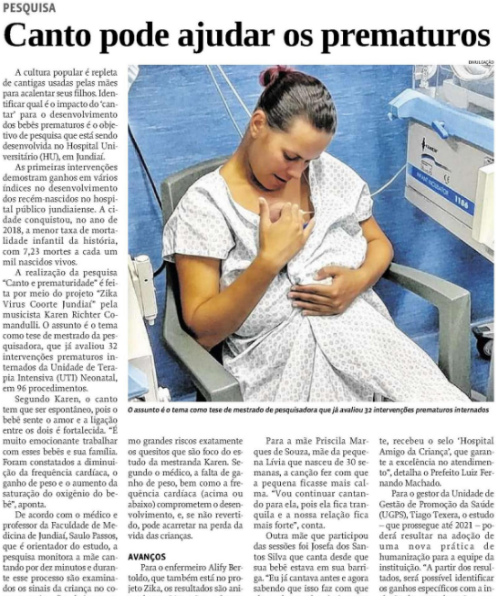 Jornal de Jundiaí – Hospital Universitário usa o canto para acalmar bebês prematuros