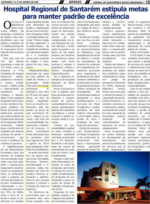 Jornal de Santarém – Hospital Regional do Baixo Amazonas estipula metas para manter padrão de excelência