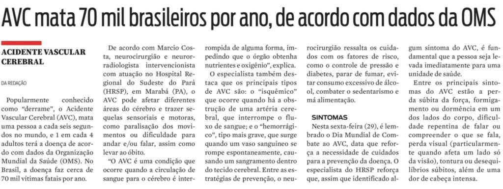 Jornal Diário do Pará – AVC mata 70 mil brasileiros por ano, de acordo com os dados da OMS
