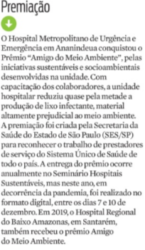 Jornal Diário do Pará – Hospital Metropolitano conquista prêmio Amigo do Meio Ambiente