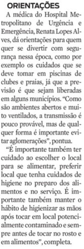 Jornal Diário do Pará – Médica do Hospital Metropolitano alerta sobre opções de lazer com chances de contaminação da Covid-19