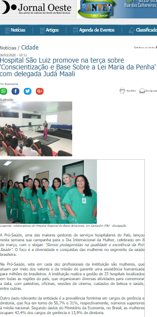 Jornal do Oeste – Hospital São Luiz promove a palestra de conscientização e orientação sobre a Lei Maria da Penha