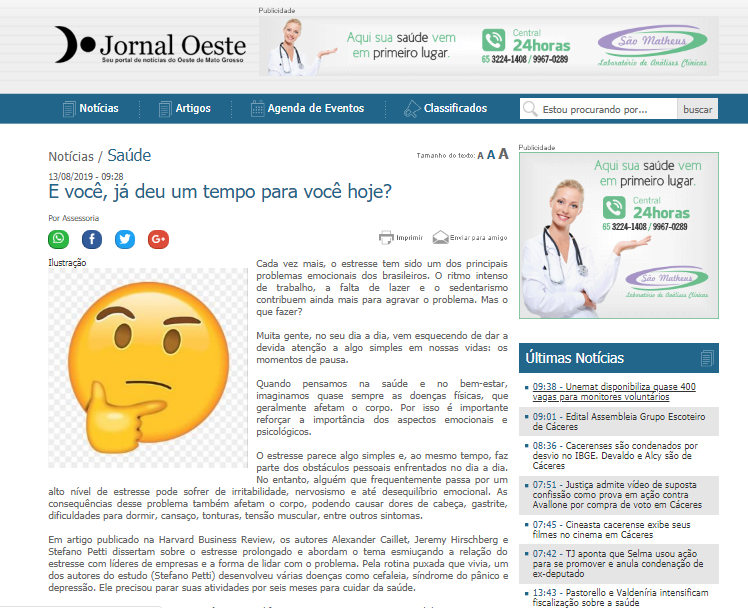 Jornal do Oeste – Neurologista do Instituto Estadual do Cérebro Paulo Niemeyer adverte sobre os perigos do stress