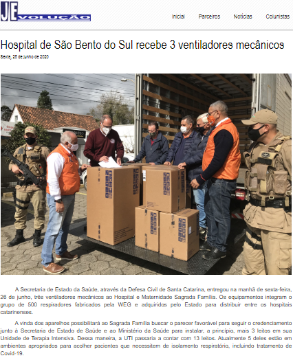 Jornal Evolução – Hospital Sagrada Família recebe 3 respiradores mecânicos