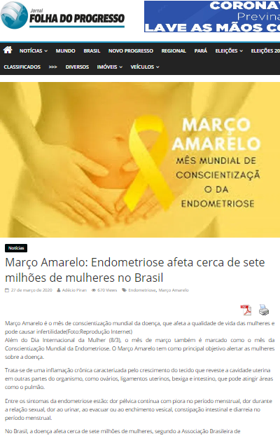 Jornal Folha do Progresso – Ginecologista do Hospital Yutaka Takeda alerta para Endometriose, doença que afeta cerca de sete milhões de mulheres no Brasil