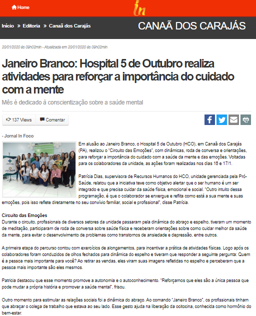 Jornal in Foco – Hospital 5 de Outubro reforça a importância da saúde mental