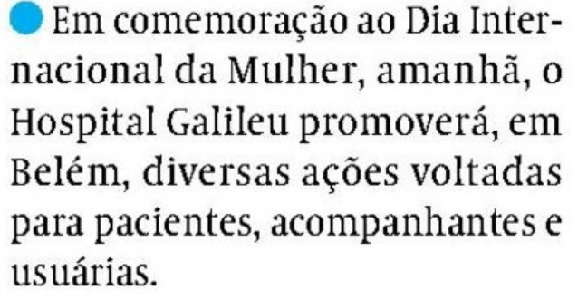 Jornal O Liberal – Dia da mulher no Hospital Galileu é marcado por palestras sobre violência