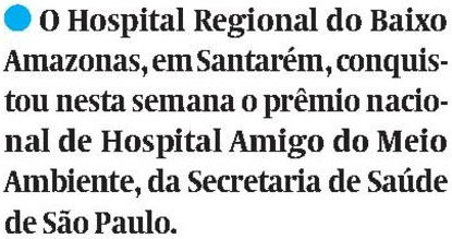Jornal O Liberal – Hospital Regional do Baixo Amazonas conquista Prêmio Amigo do Meio Ambiente, em São Paulo