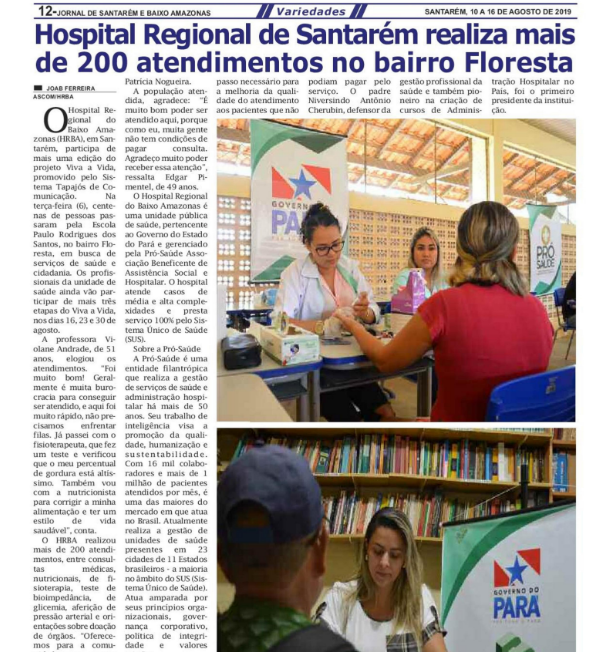 Jornal Santarém – Hospital Regional de Santarém realiza mais de 200 atendimentos no bairro Floresta