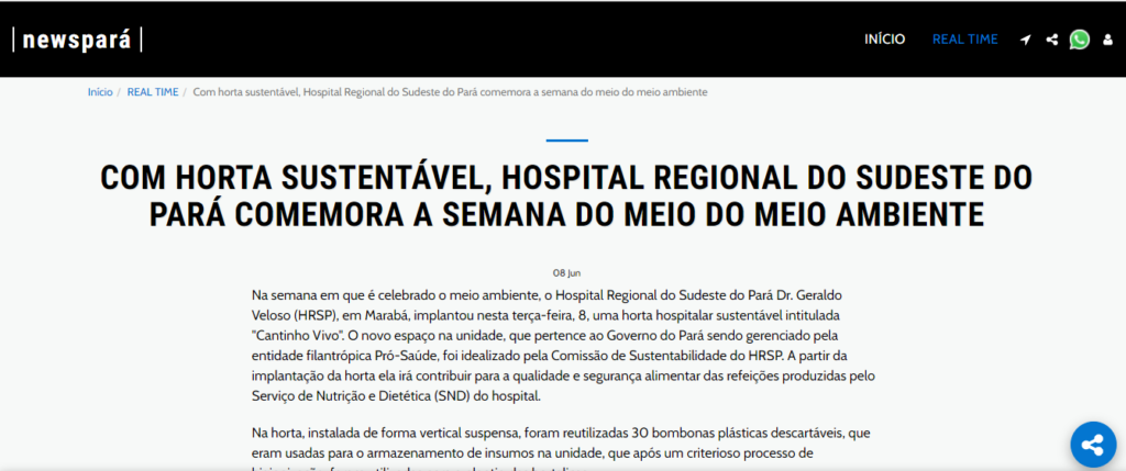 News Pará – Com horta sustentável, Hospital Regional do Sudeste do Pará comemora a semana do meio ambiente