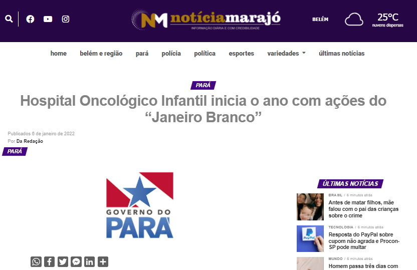 Notícia Marajó – Hospital Oncológico Infantil inicia o ano com ações “Janeiro Branco”