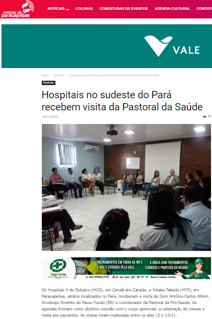 Notícias de Parauapebas – Hospitais da Pró-Saúde no sudeste do Pará recebem visita da Pastoral da Saúde