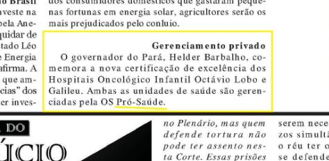 Nova Imprensa – Colunista destaca comemoração do governo do Pará pela conquista da excelência em hospitais gerenciados pela Pró-Saúde