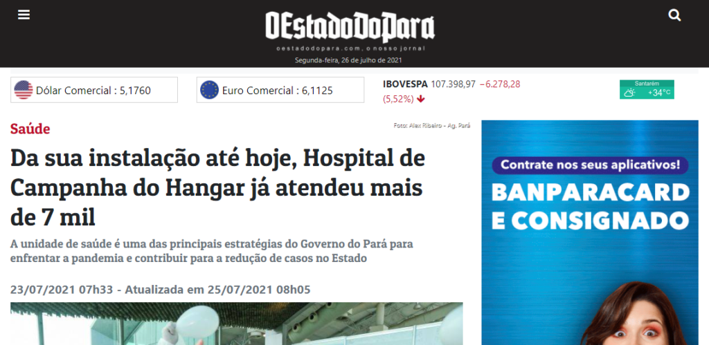 O Estado do Pará – Da sua instalação até hoje, Hospital de Campanha do Hangar já atendeu mais de 7 mil