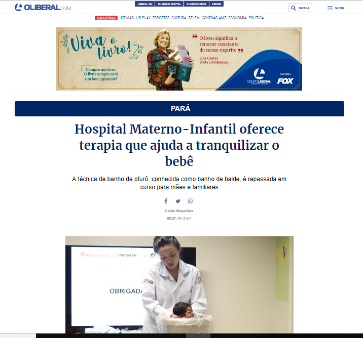 O Liberal – Hospital Materno-Infantil oferece terapia que ajuda a tranquilizar o bebê