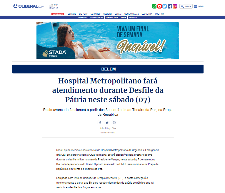 O Liberal – Hospital Metropolitano de Urgência e Emergência fará atendimento durante Desfile da Pátria neste sábado 07/9