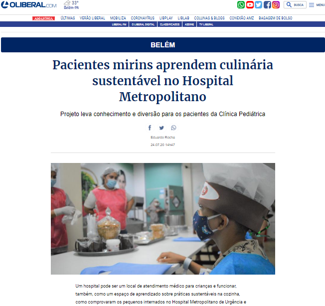 O Liberal – Pacientes mirins aprendem culinária sustentável no Hospital Metropolitano