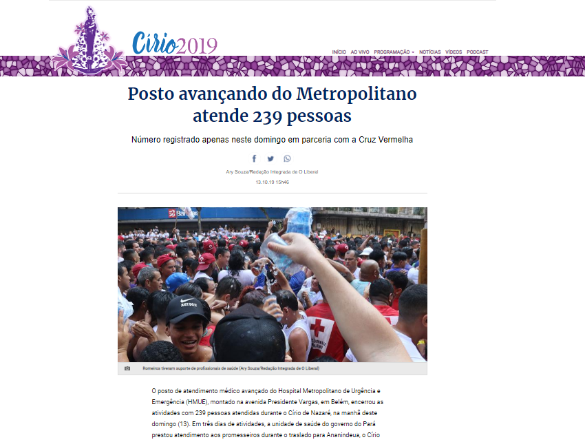 O Liberal – Posto de atendimento montado pelo Hospital Metropolitano de Urgência e Emergência atendeu a 239 de fiéis