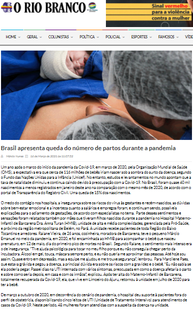 O Rio Branco – Brasil apresenta queda no número de partos durante a pandemia