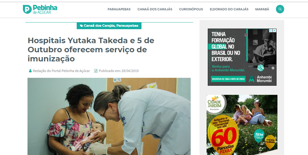 Pebinha de Açúcar – Hospitais Yutaka Takeda e 5 de Outubro oferecem serviço de imunização