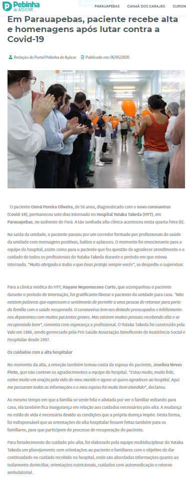 Pebinha de Açúcar – Paciente recebe alta e homenagem após lutar contra a Covid-19 por sete dias no Hospital Yutaka Takeda