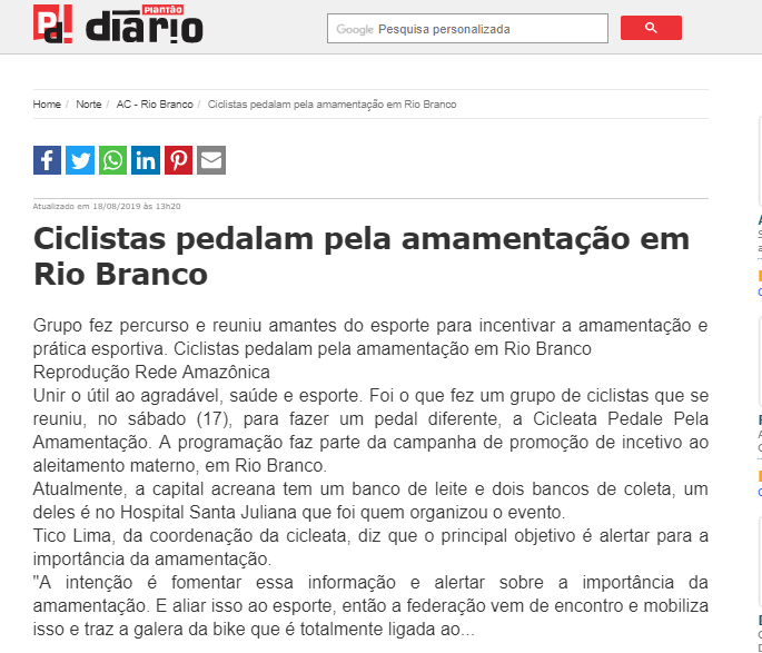 Plantão Diário – Hospital Santa Juliana promove pedalada pela amamentação
