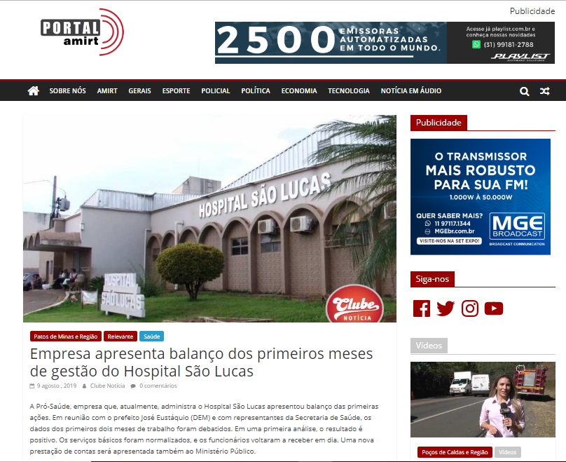 Portal Amirt – Pró-Saúde apresenta balanço positivo dos primeiros meses de gestão do Hospital São Lucas