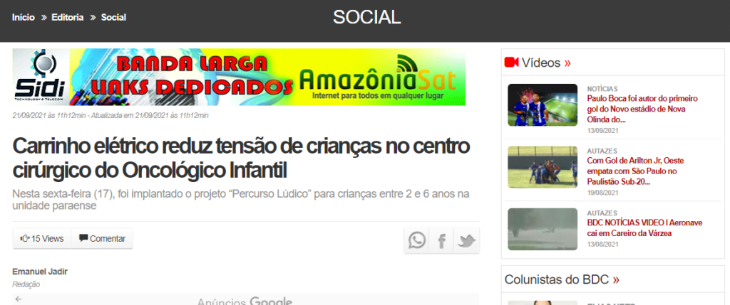 Portal BDC Notícias – Carrinho elétrico reduz tensão de crianças no centro cirúrgico do Oncológico Infantil