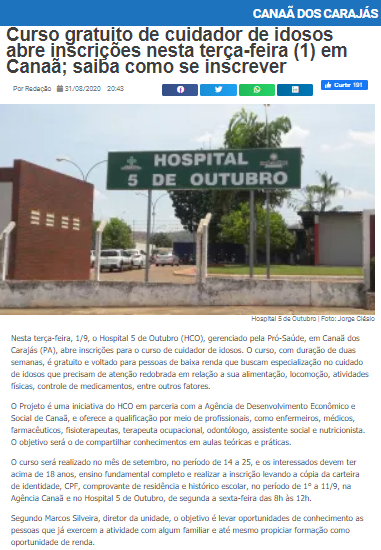 Portal Canaã – Hospital 5 de Outubro oferece curso gratuito de cuidador de idosos