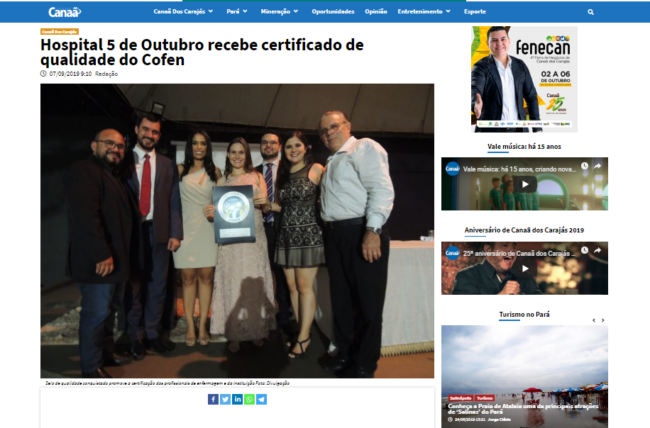 Portal Canaã – Hospital 5 de Outubro recebe certificado de qualidade do Cofen