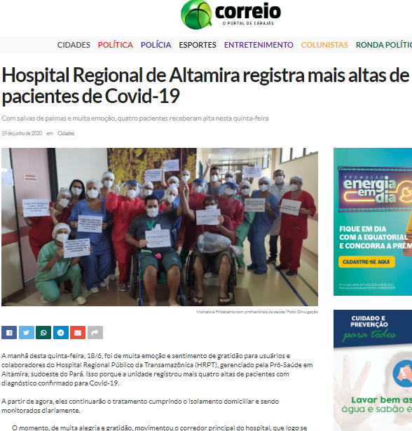 Portal Correio dos Carajás – Hospital Regional da Transamazônica registra quatro altas de pacientes de Covid-19 em um dia