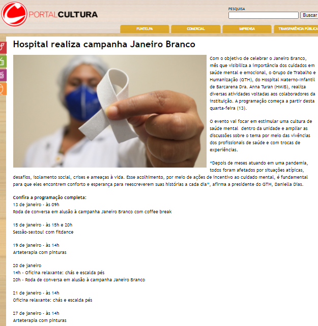 Portal Cultura Pará – Hospital Materno-Infantil de Barcarena adere à campanha Janeiro Branco