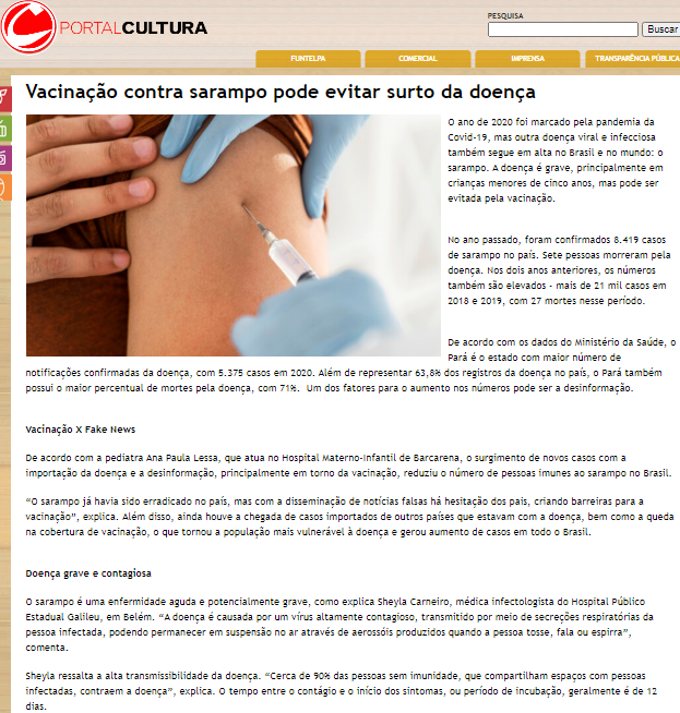 Portal Cultura – Profissionais da Pró-Saúde reforçam a importância da vacinação contra o sarampo