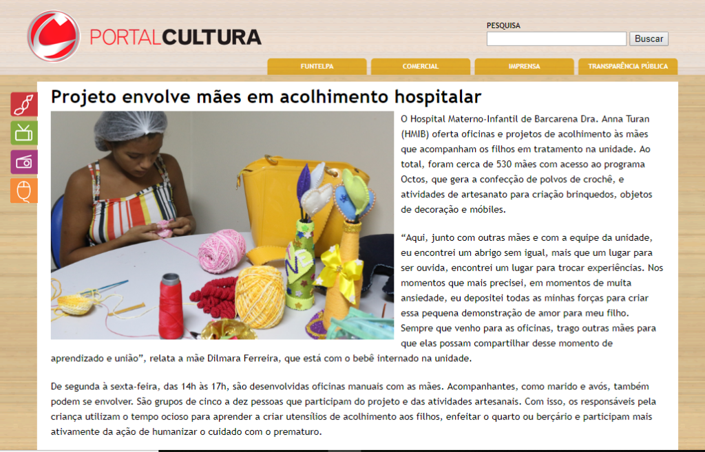 Portal Cultura – Projeto envolve mães em acolhimento hospitalar