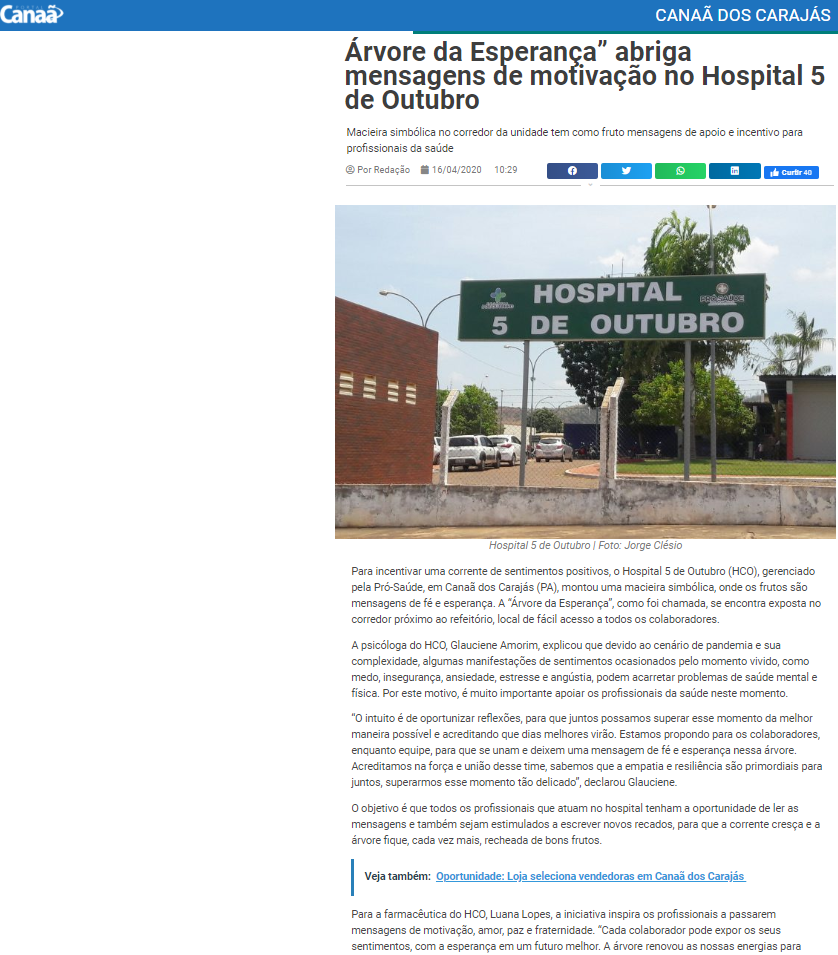 Portal do Canaã – Hospital 5 de Outubro planta árvore para abrigar mensagens de fé e esperança