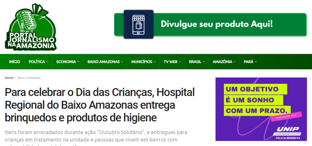 Portal Jornalismo da Amazônia – Para celebrar o Dia das Crianças, Hospital Regional do Baixo Amazonas entrega brinquedos e produtos de higiene