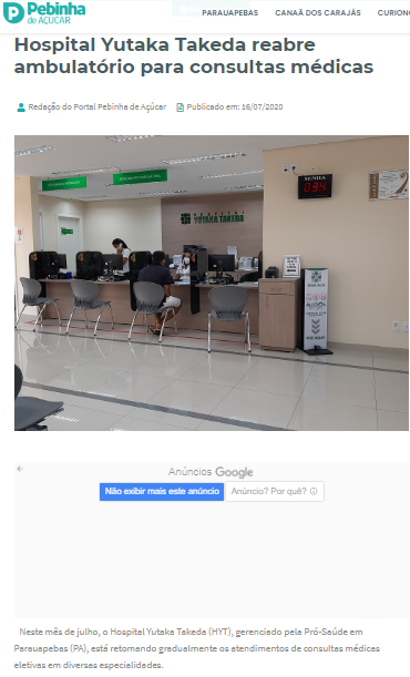 Portal Pebinha de Açúcar – Hospital Yutaka Takeda reabre ambulatório para consultas médicas