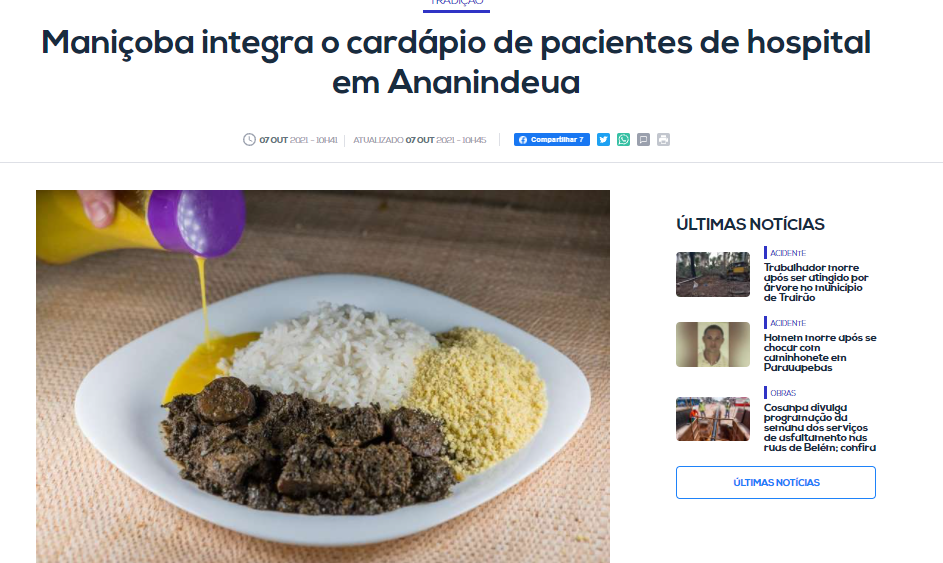 Portal Roma News – Maniçoba integra o cardápio de pacientes de hospital em Ananindeua