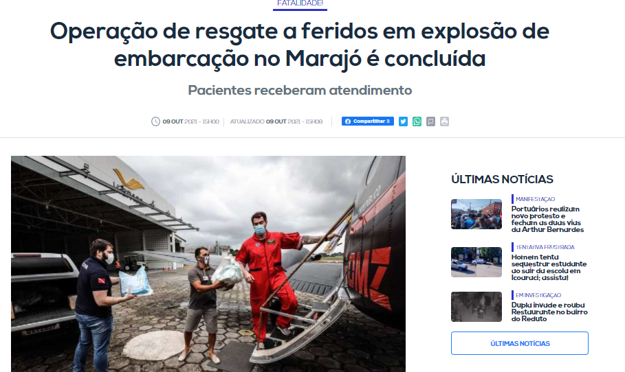 Portal Roma News – Operação de resgate a feridos em explosão de embarcação no Marajó é concluída