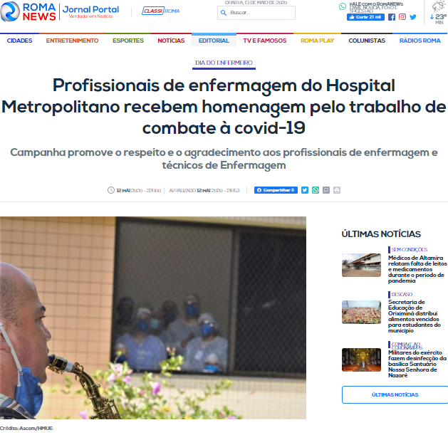Portal Roma News – Profissionais de Enfermagem do Hospital Metropolitano recebem homenagem pelo trabalho de combate à Covid-19.