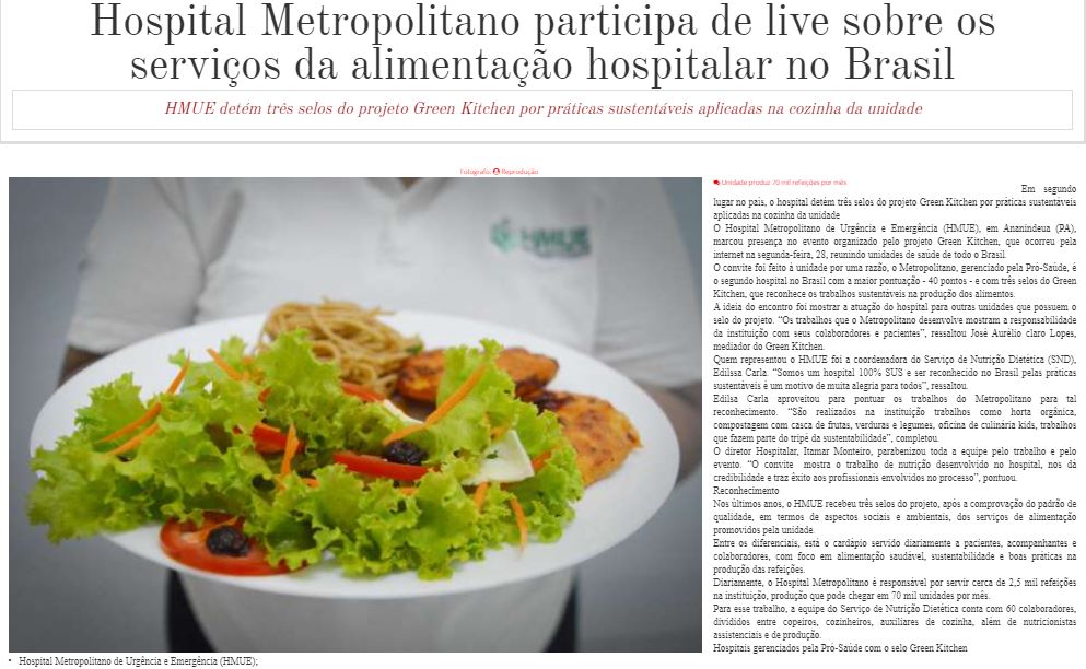 Portal Santarém – Hospital Metropolitano participa de live sobre os serviços da alimentação hospitalar no Brasil