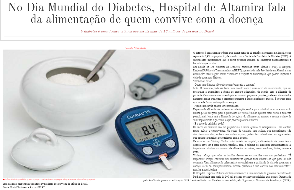 Portal Santarém – Mitos e verdades da alimentação de quem convive com a diabetes