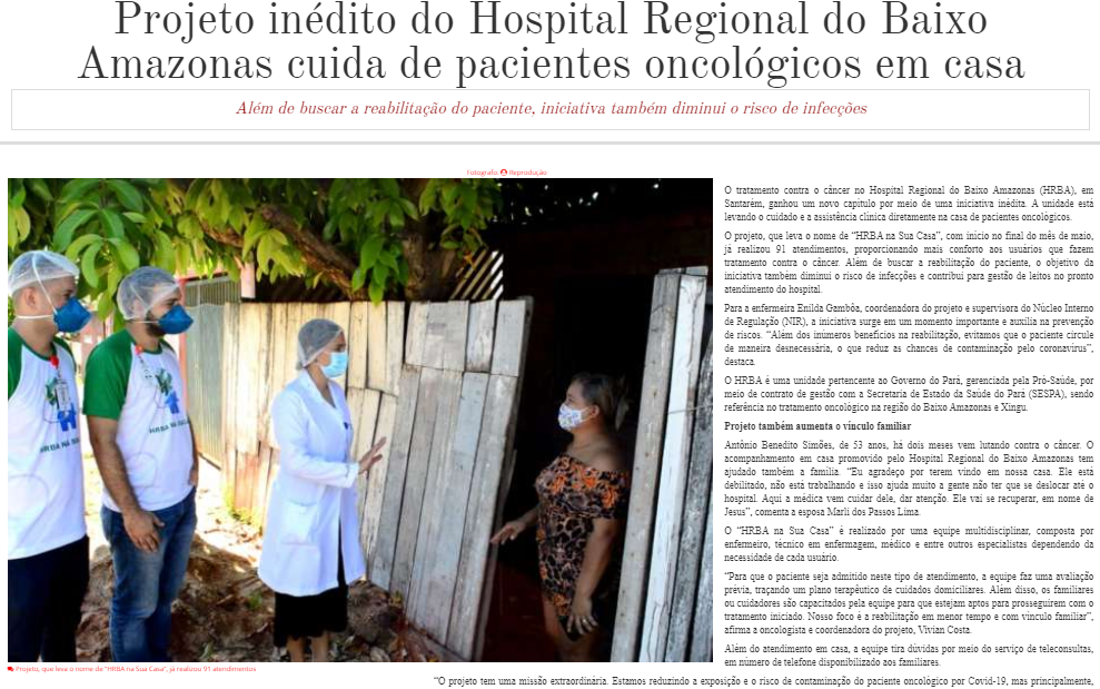 Portal Santarém – Projeto inédito do Hospital Regional do Baixo Amazonas cuida de pacientes oncológicos em casa