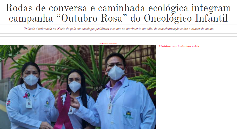 Portal Santarém – Rodas de conversa e caminhada ecológica integram campanha “Outubro Rosa” do Oncológico Infantil